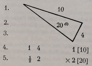 | 5 | [um es rechteckig werden zu lassen. Rechne mit 10] 2mal. | [namely 2, in order to get one side of its equivalent rectangle. Multiply 10, the other side of the rectangle,] times 2. |