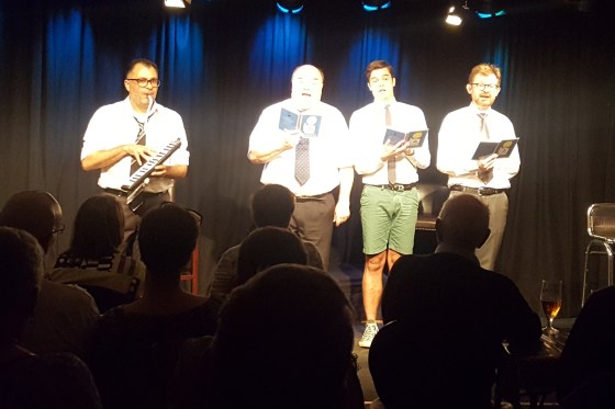 Kæresten blev opmærksom på en ny forestilling: DE FRELSTE SYNGER – Stand-Up-Revy II. (Det link virker nok ikke ret længe …) Stand-up-revyen var sjov sidste år, så det er den nok også i år. Det lykkes efter noget nølen at få billetter en aften, der ikke er helt eller halvt udsolgt. En mandag. Ja, ja. Fint nok.