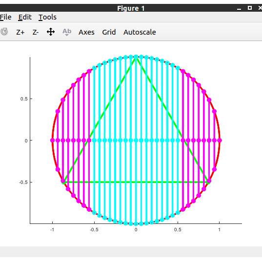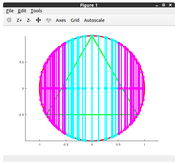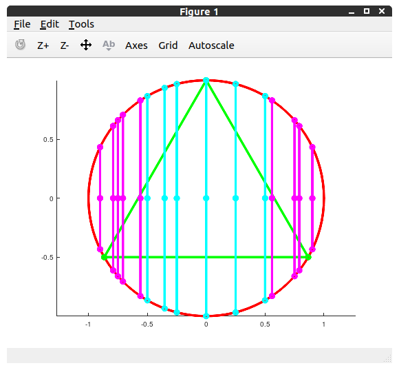 I rotate points to be on the x-axis, if they aren’t already. (Now all chords will be vertical.) Then I construct the chords.