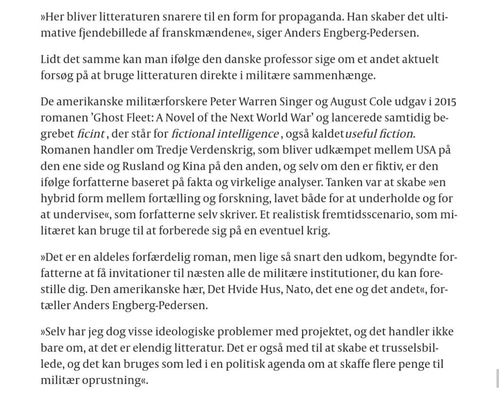According to the Danish professor, the same can be said about another current attempt to use the literature directly in military contexts.