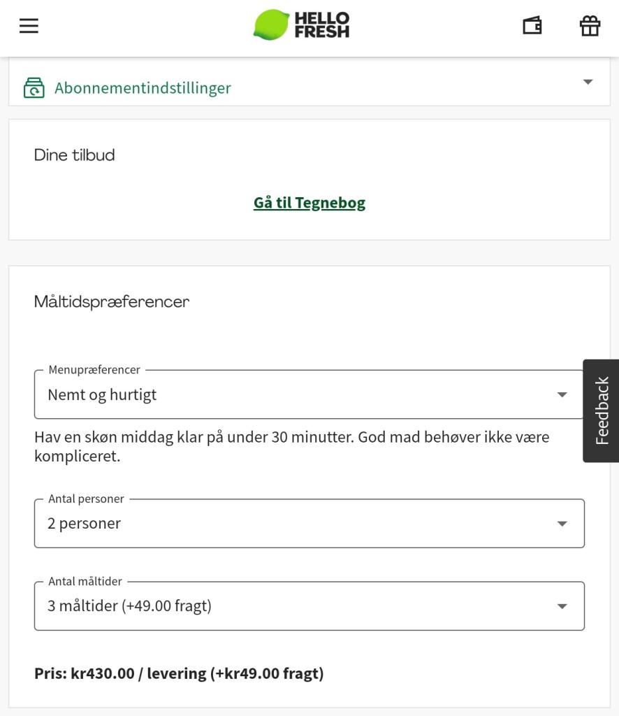 Jeg er forsigtigt i gang med at afprøve HelloFresh. Det lyder bare rigtig godt, at man får en kasse med præcis det, der er brug for, hverken mere eller mindre. Ikke noget med et helt hvidløg her, nej nej. Hvis der står 2 fed i opskriften, så får du 2 fed.