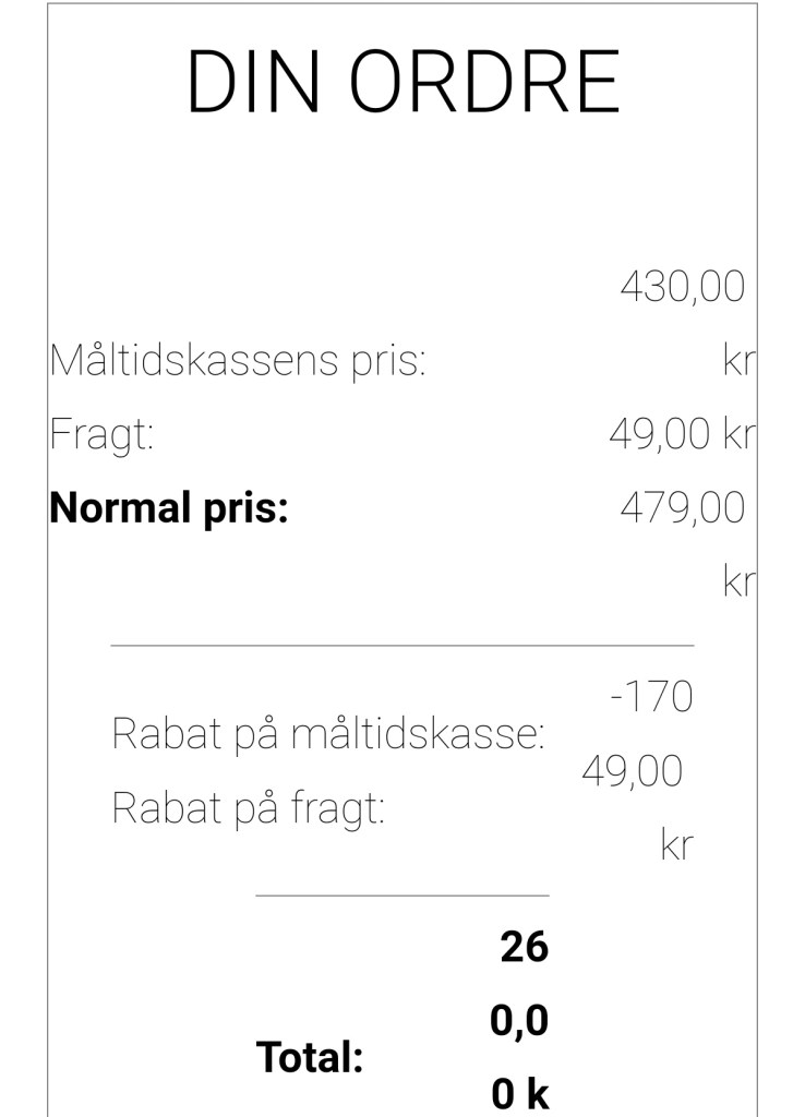 Men jeg er ved at blive fortvivlet over alt, hvad der har med betaling at gøre. Se nu fx, da jeg ville have overblik over prisen på næste kasse.