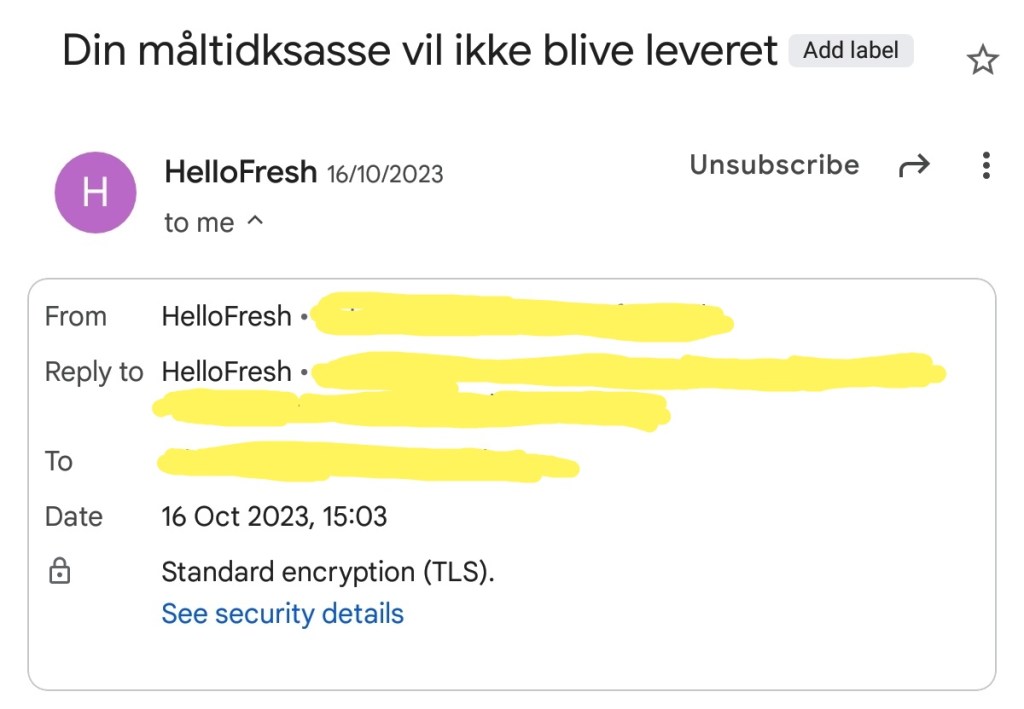Svaret på det er (gætter jeg på), at jeg får den her udregning som mail. Det var i hvert fald noget i den retning, der skete ved en tidligere lejlighed. Der havde jeg bestilt en kasse til levering om onsdagen. Søndag fik jeg det her.