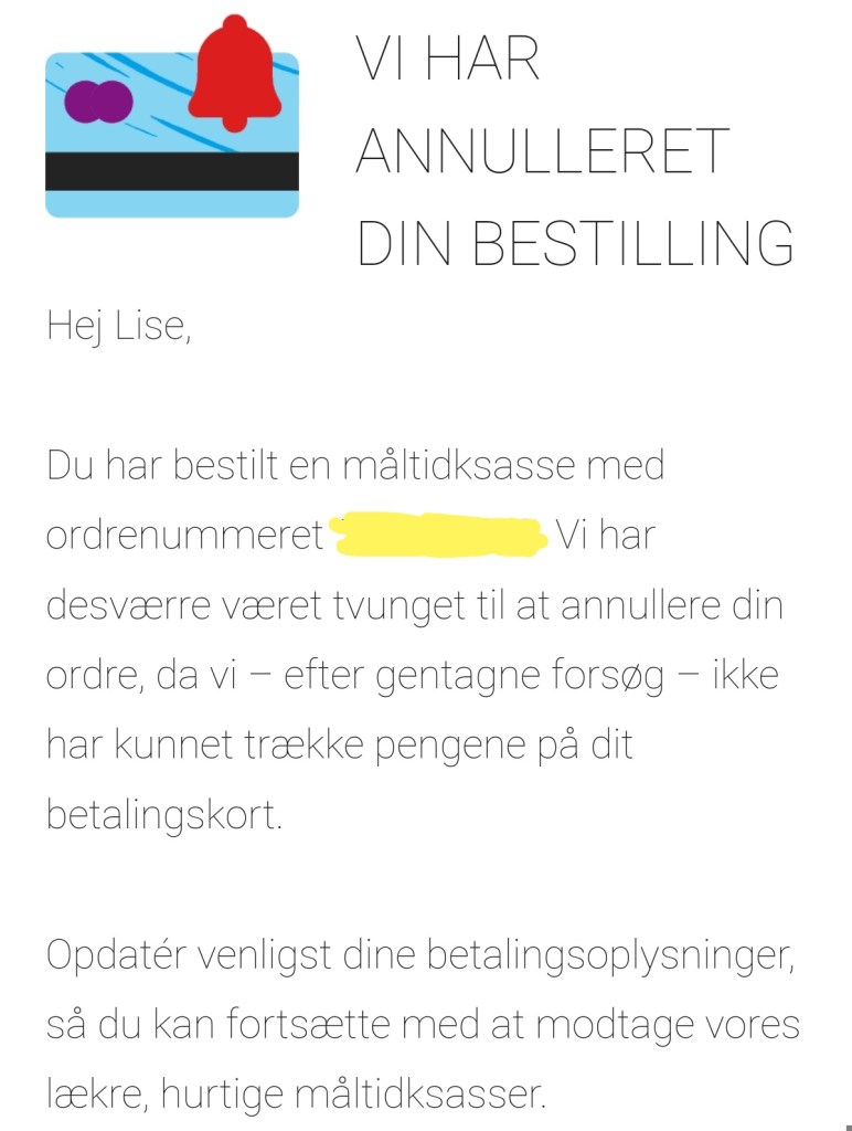 Jeg har i god tid sikret mig, at der ville være penge nok på kontoen om onsdagen. Men det er altså ikke nok. Og da jeg ikke reagerer hurtigt nok, så kommer næste besked 6 timer senere.