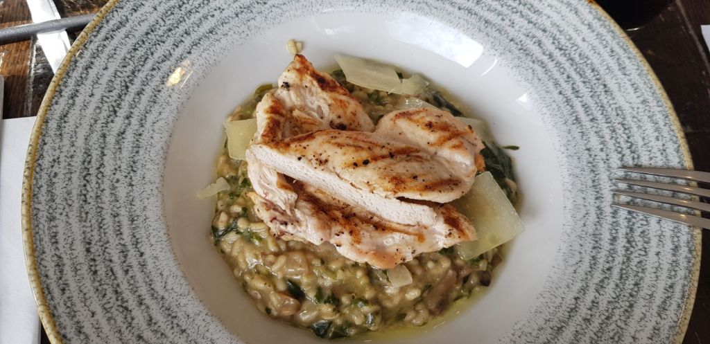 Dagen sluttede med aftensmad på et andet hotel. Hilton? Glimrende mad, der ikke sprudlede af opfindsomhed. Kæresten fik en bøf, jeg fik risotto.