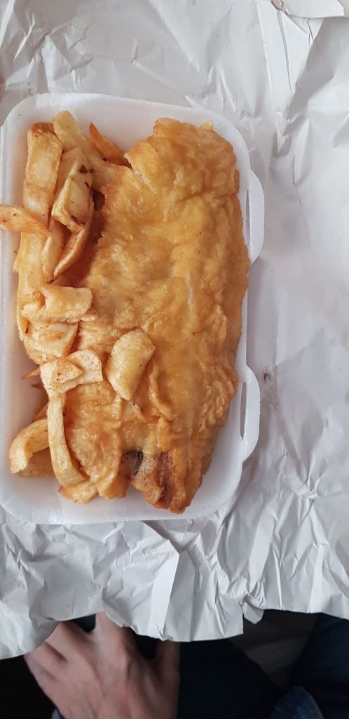 Stille aftensmad på hotellet blev til noget fish & chips. Det kan fås bedre og værre. Jeg var bl.a. glad for at få mosede ærter til, det er lidt specielt. Derudover skulle vi lære, at fish single = fish, fish supper = fish + chips.
