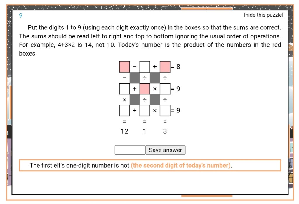 A new December and a new bunch of puzzles from mscroggs.co.uk.