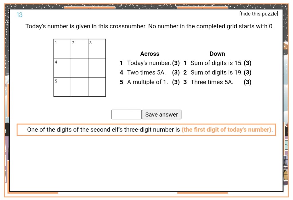 A new December and a new bunch of puzzles from mscroggs.co.uk.