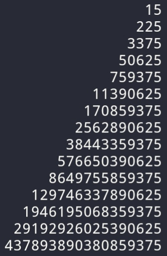 Here we are helped by a very nice pattern for 15n.