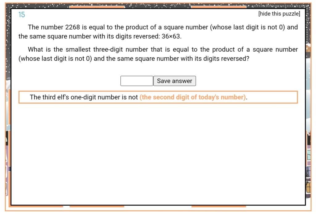 A new December and a new bunch of puzzles from mscroggs.co.uk.