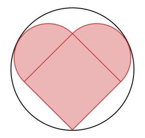 You can generate a heart shape by drawing a unit square (i.e., a square with side length 1), and then attaching semicircles (each with radius 1/2) to adjacent edges, as shown in the diagram below: