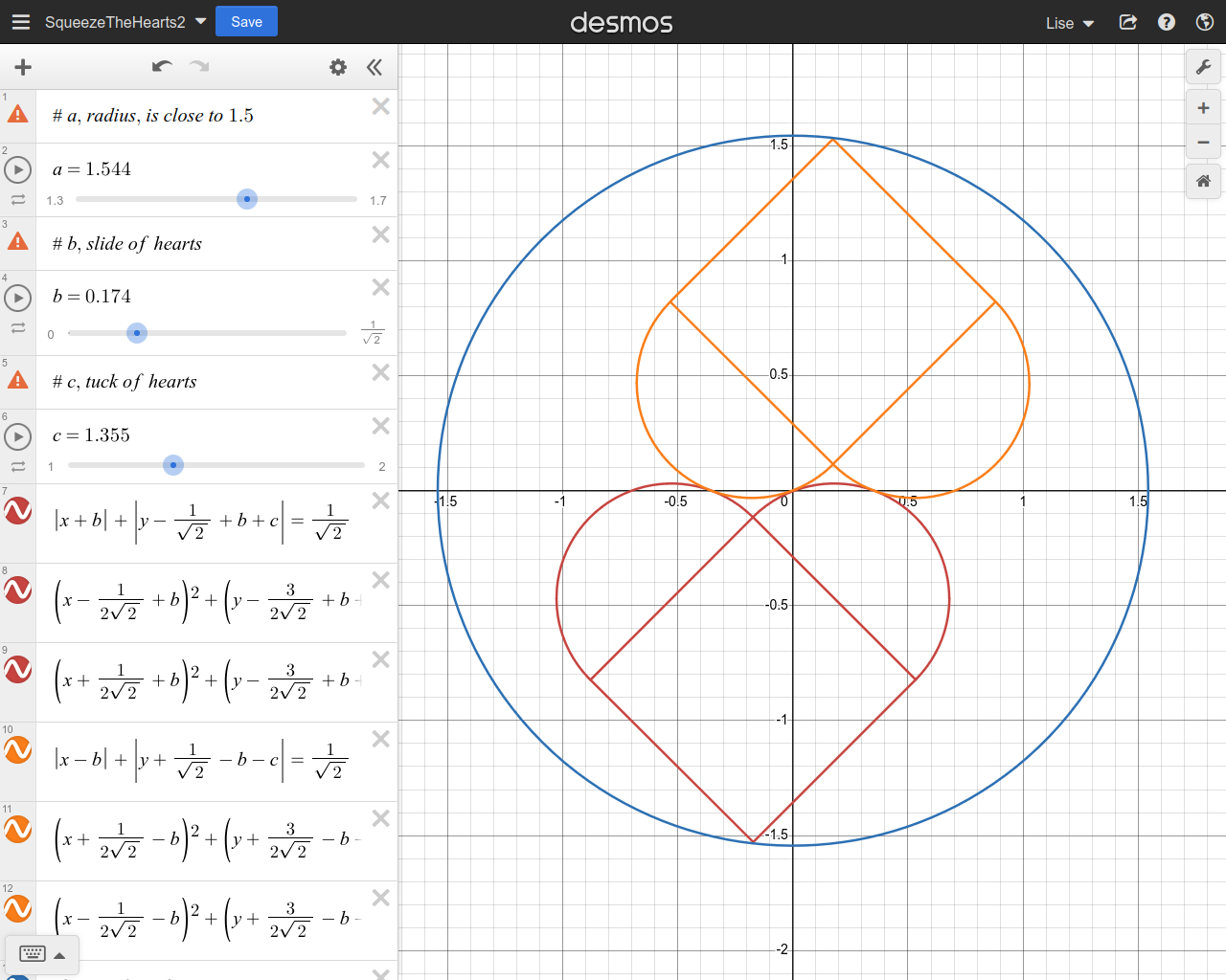 The last Desmos attempt looks at one heart right way up, the other tilted 45°. No joy.