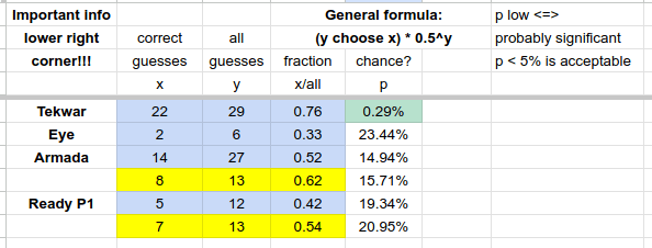 ! For the first time, the guessing skill was significantly better than flipping a coin! In 3 out of 6 episodes, all guesses were correct! Magnificent!