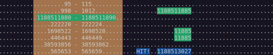 So. If we’re currently looking at the interval 95-115, 99 should be detected, because it’s “9” twice. Part 1 was very easy. In part 2 I had to give up doing part 1 and 2 simultaneously. Part of the solution was to treat numbers as strings, some of the time. PHP made that very easy.