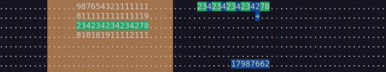 I think I wrote part 1 as brute force and then changed it for part 2. Key insight: If I’m looking for a digit, that will end up as e.g. the 7th digit of the result, counting from the back, it can’t be 1 of the last 6 digits of the number, because they may have to be the last 6 digits. Let’s say that leaves 5 digits. (I may have already used some of the preceding digits for the start of the result.) Then the optimal solution is to choose the highest digit of those 5. If that digit occurs more than once, choose the leftmost, to leave as many candidates as possible for the next digits. Also, recursion.