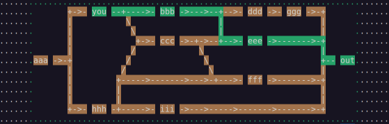Day 11: Given a network, how many ways to travel from a to b. Or from a to b via c and d.