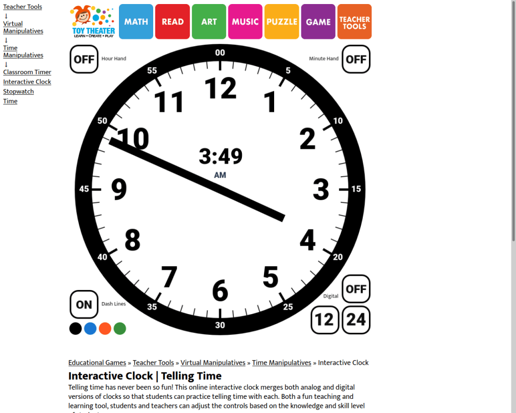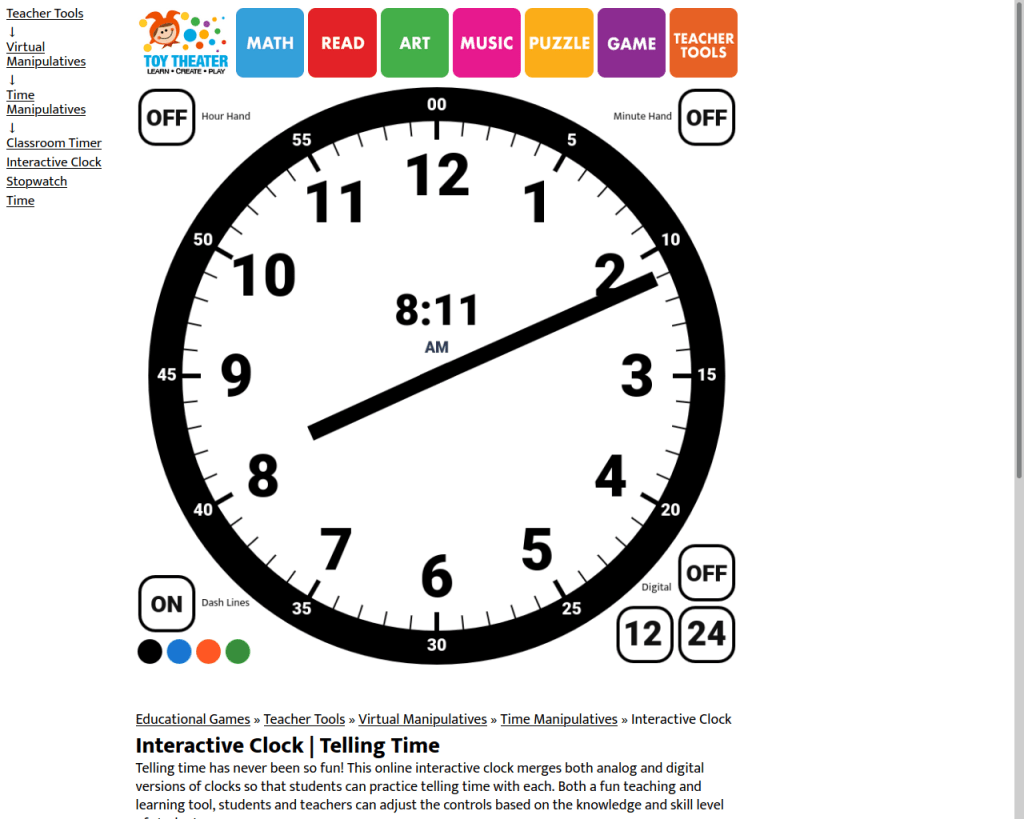 | A standard analog clock includes an hour hand, a minute hand, and 60 minute markers, 12 of which are also hour markers. |
