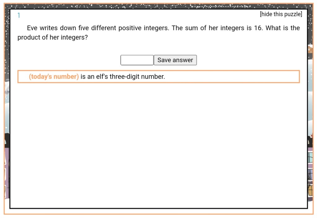 A new December and a new bunch of puzzles from mscroggs.co.uk.