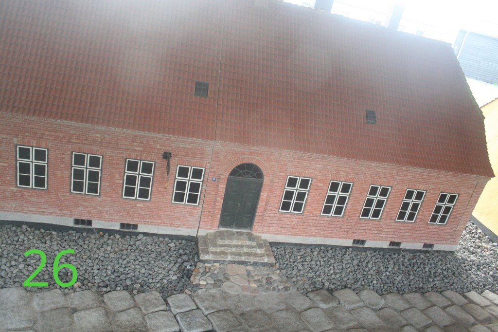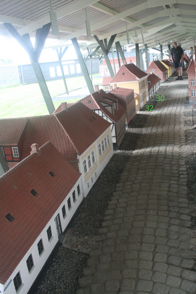 Minibyen er rigtig meget baseret på Sct. Mogens Gade, den del der i dag hedder nr. 1 til 54. Minibyen er ikke helt magen til billedet ovenfor, som jeg selv har strikket sammen. Dels er kortet ovenfor baseret på forholdene i dag, 2025, dels mangler der huse i minibyen (bl.a. domkirken, som den så ud dengang), dels tager minibyen også lidt fra sidegaderne med. Men sådan i det store og hele, ikk?